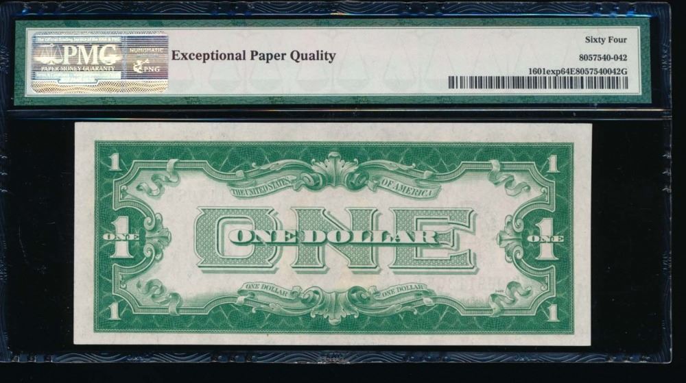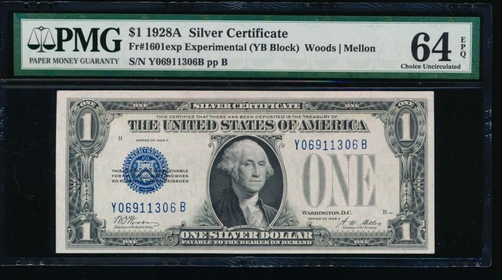 One 1928A $1 Experimental Silver Certificate PMG 64EPQ.