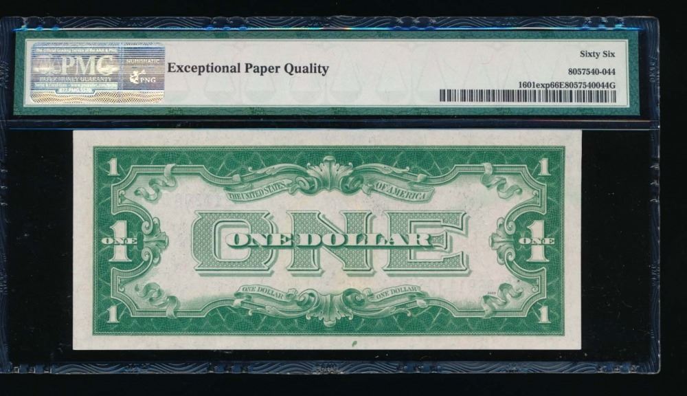 One 1928A $1 Experimental Silver Certificate PMG 66EPQ.