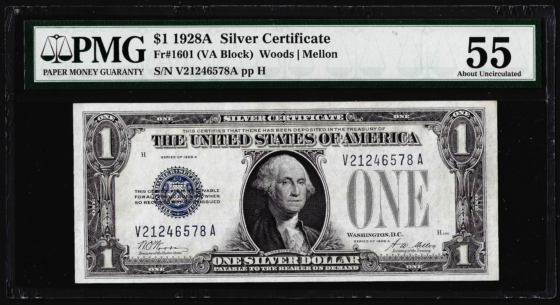 1928A $1 Funnyback Silver Certificate Note Fr.1601 PMG Choice About Uncirculated 55