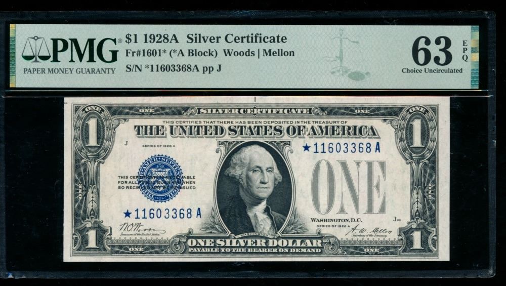 One 1928A $1 STAR Silver Certificate PMG 63EPQ.
