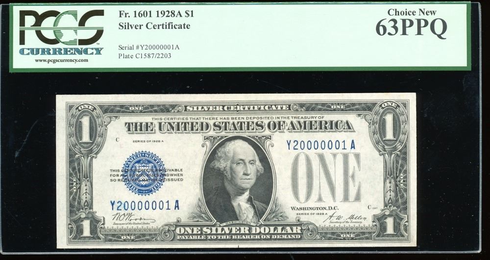 One 1928A $1 Silver Certificate Fancy Serial Number PCGS 63PPQ.