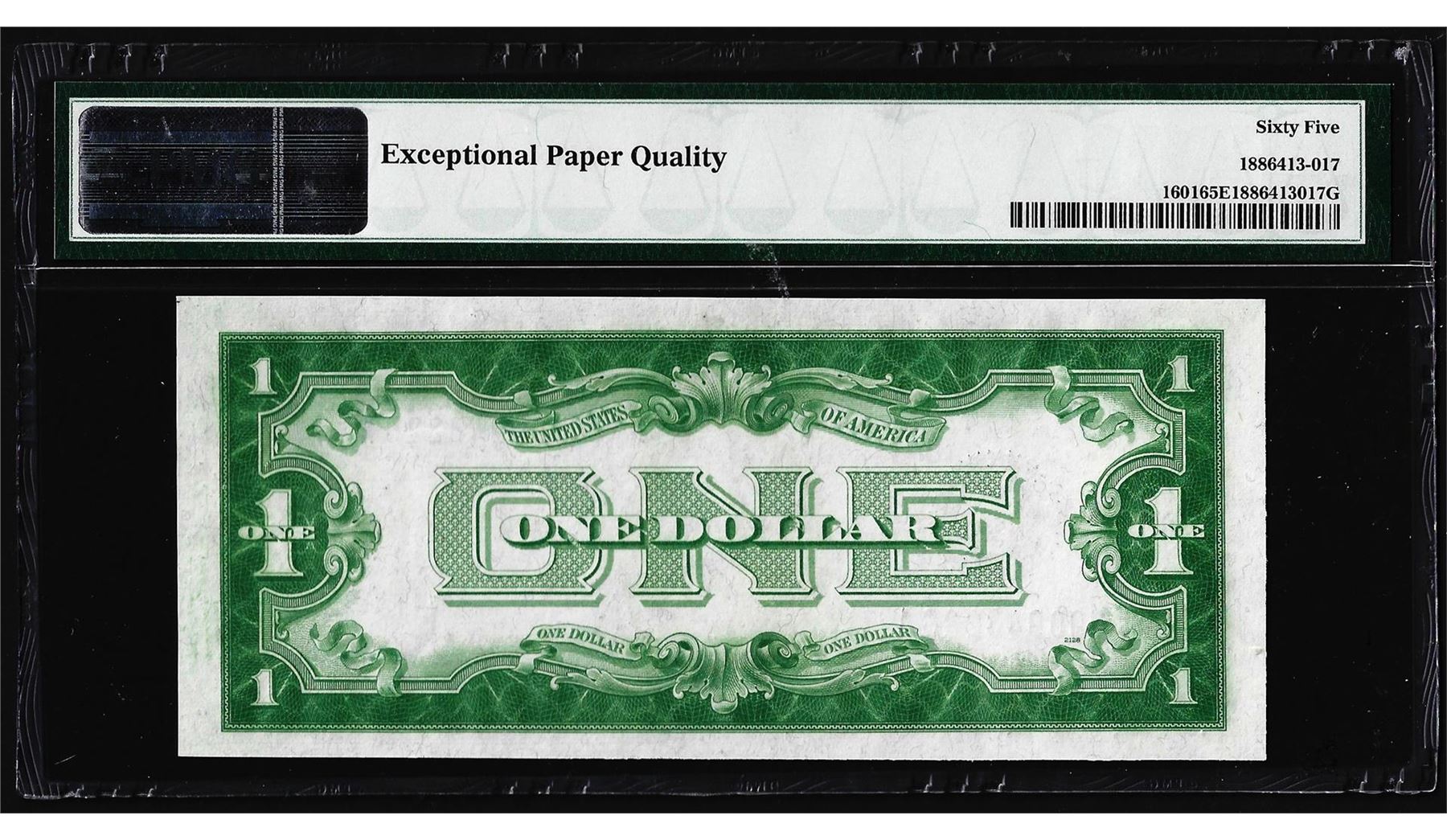 One 1928A $1 Silver Certificate Note Fr.1601 PMG Gem Uncirculated 65EPQ. PMG Certified.