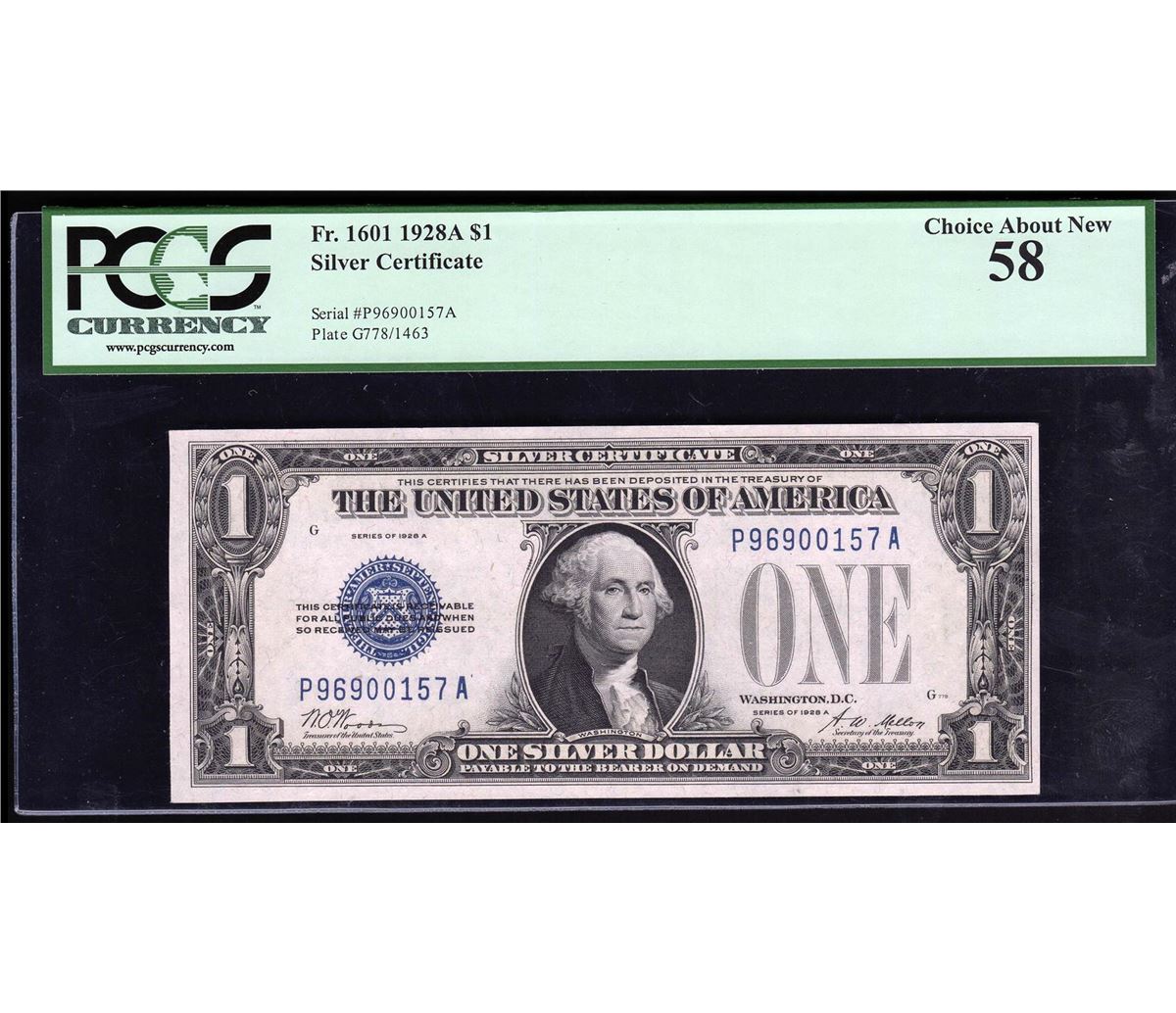 One 1928A $1 Silver Certificate Note PCGS 58PPQ Choice About New. PCGS Graded.