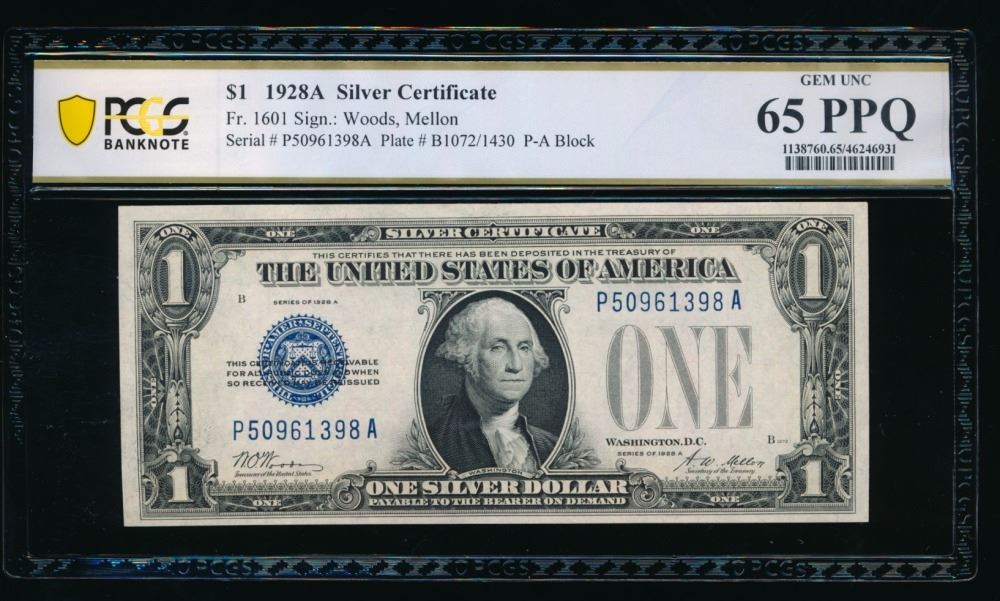 One 1928A $1 Silver Certificate PCGS 65PPQ.