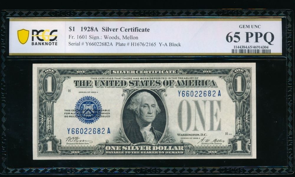 One 1928A $1 Silver Certificate PCGS 65PPQ.