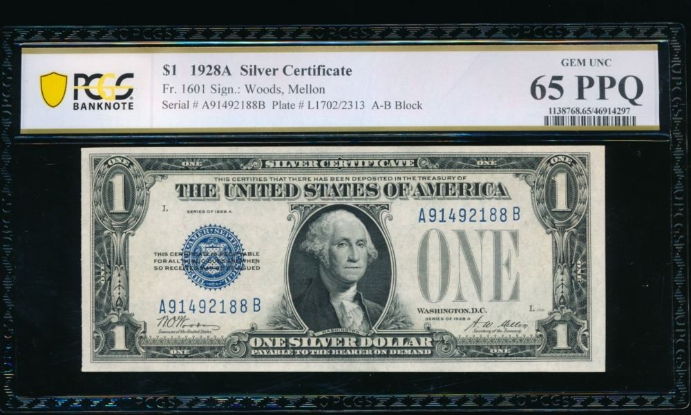 One 1928A $1 Silver Certificate PCGS 65PPQ.