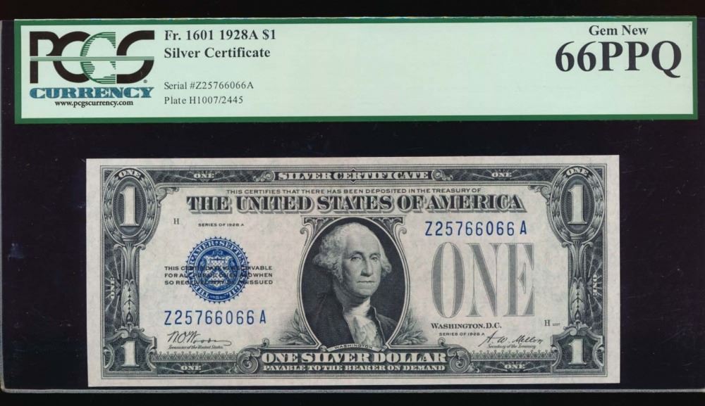 One 1928A $1 Silver Certificate PCGS 66PPQ.