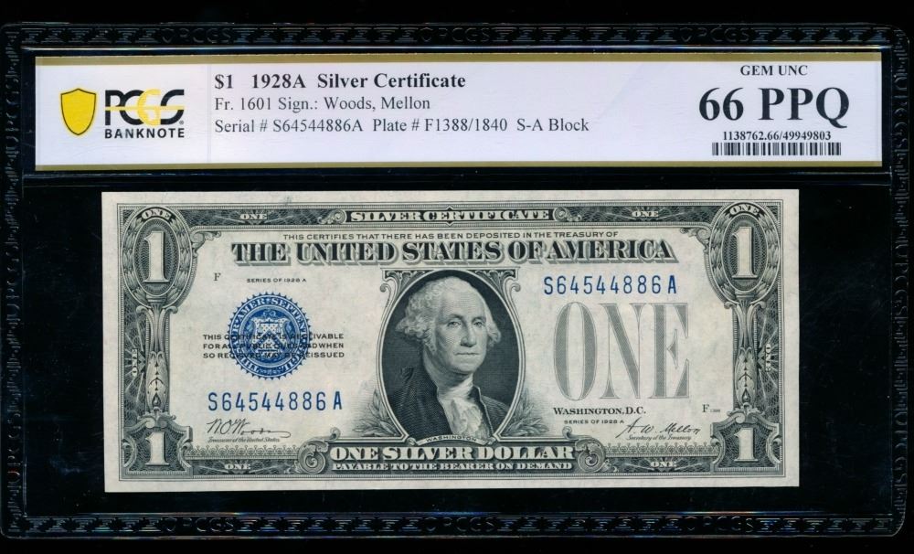 One 1928A $1 Silver Certificate PCGS 66PPQ.