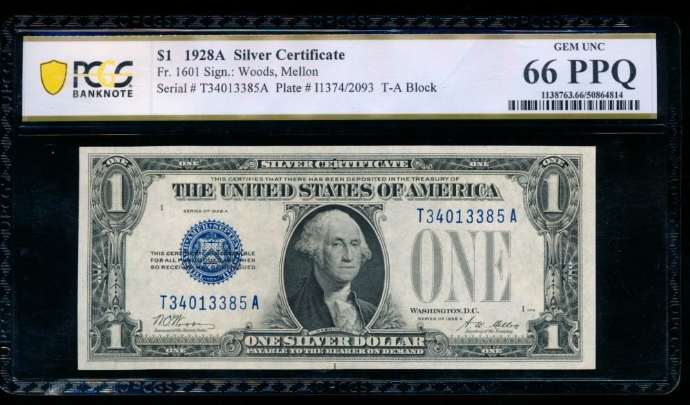 One 1928A $1 Silver Certificate PCGS 66PPQ.