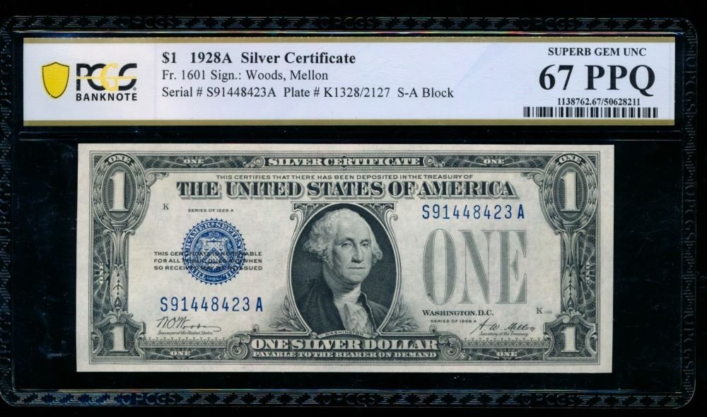 One 1928A $1 Silver Certificate PCGS 67PPQ.