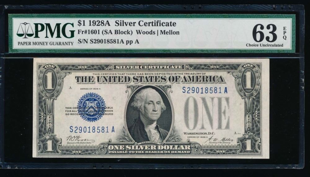 One 1928A $1 Silver Certificate PMG 63EPQ.