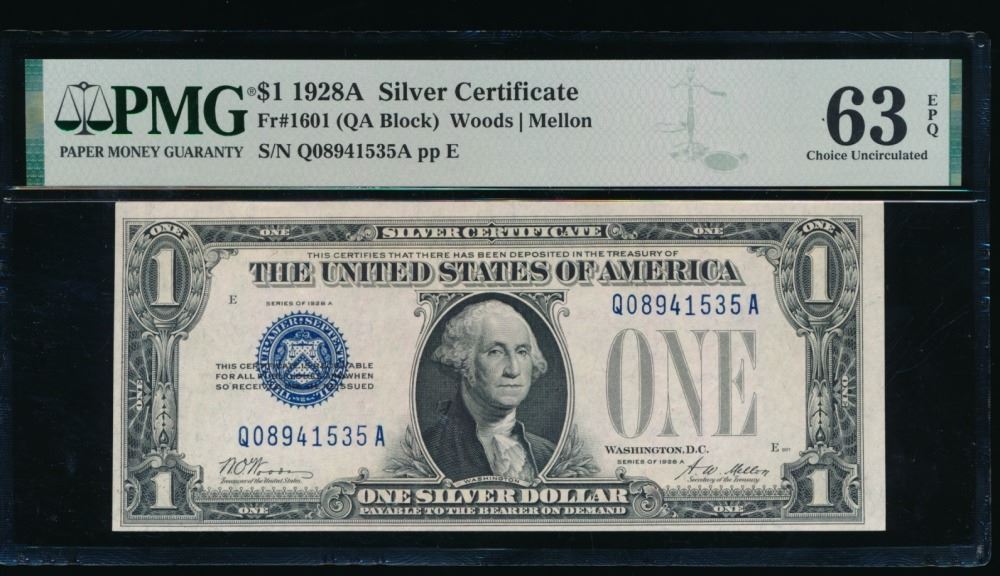 One 1928A $1 Silver Certificate PMG 63EPQ.