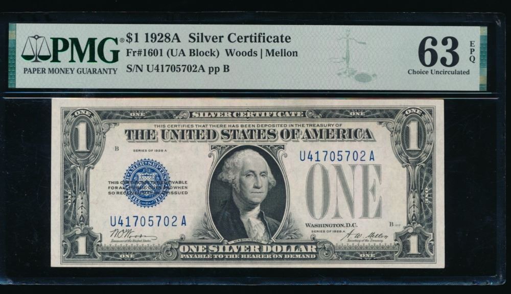 One 1928A $1 Silver Certificate PMG 63EPQ.