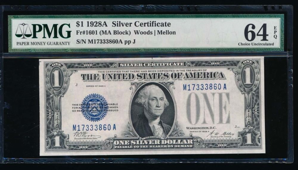 One 1928A $1 Silver Certificate PMG 64EPQ.