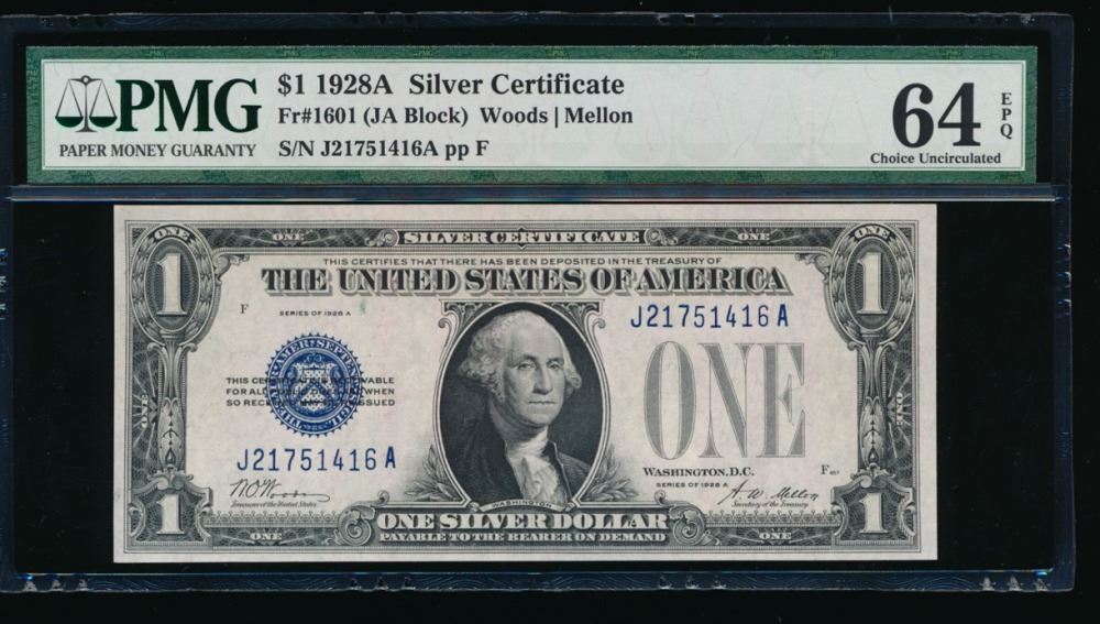 One 1928A $1 Silver Certificate PMG 64EPQ.