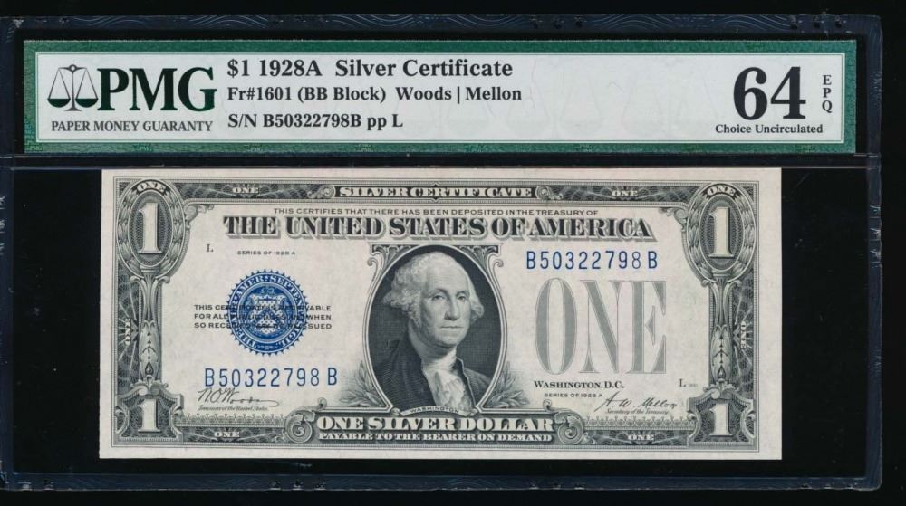 One 1928A $1 Silver Certificate PMG 64EPQ.