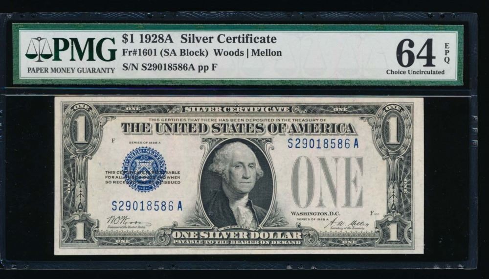 One 1928A $1 Silver Certificate PMG 64EPQ.