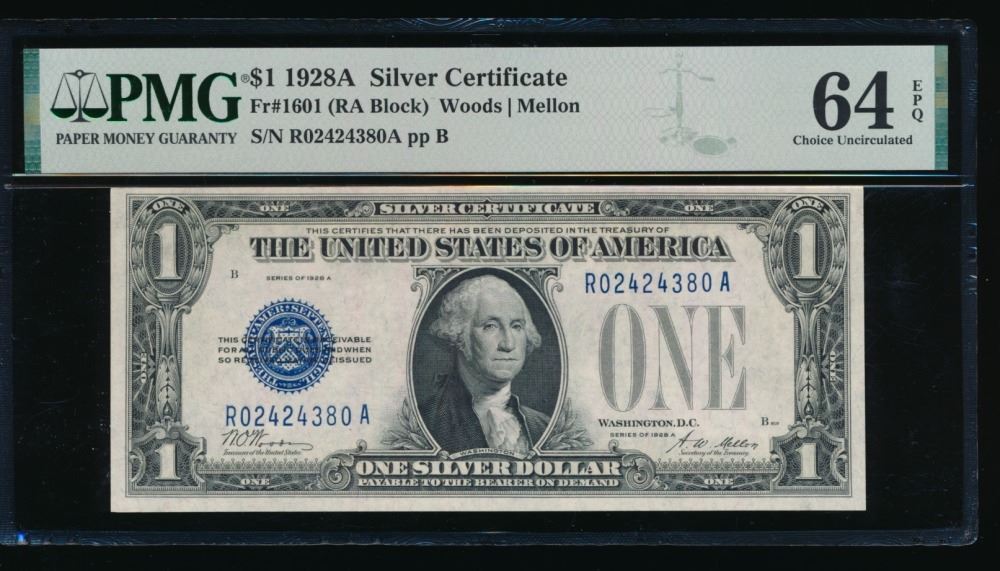 One 1928A $1 Silver Certificate PMG 64EPQ.