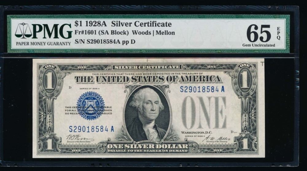 One 1928A $1 Silver Certificate PMG 65EPQ.