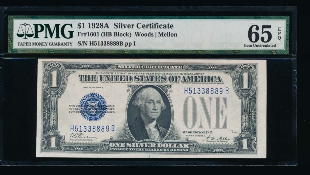 One 1928A $1 Silver Certificate PMG 65EPQ.