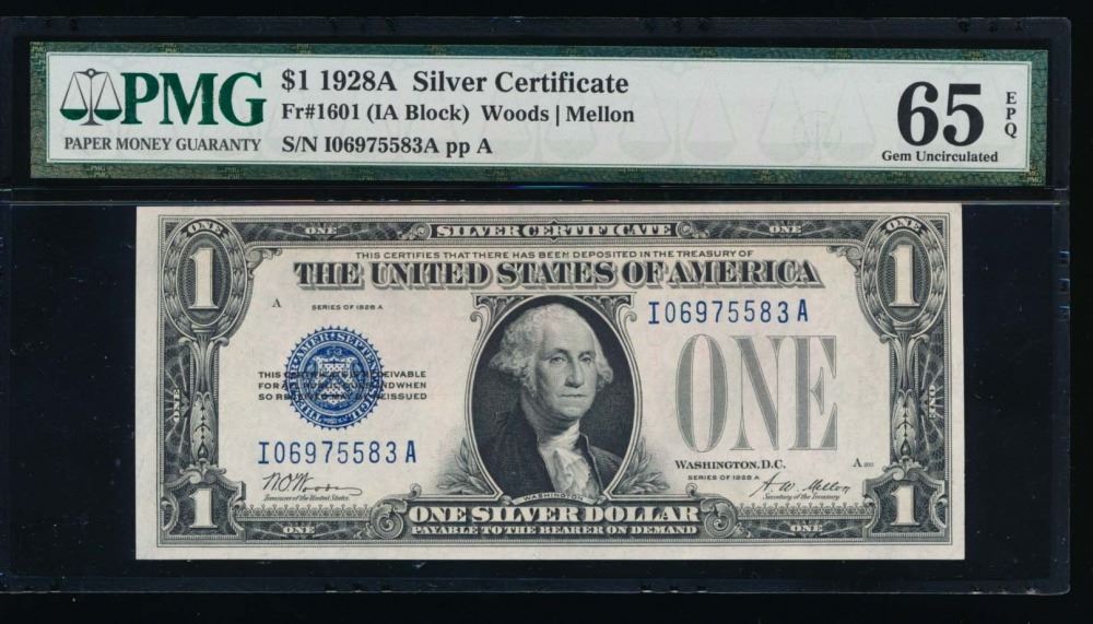 One 1928A $1 Silver Certificate PMG 65EPQ.