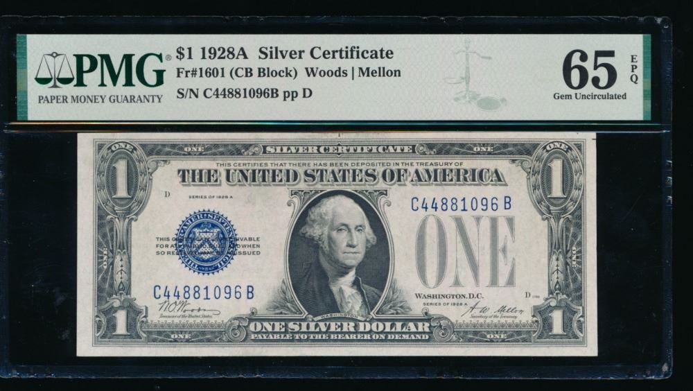 One 1928A $1 Silver Certificate PMG 65EPQ.