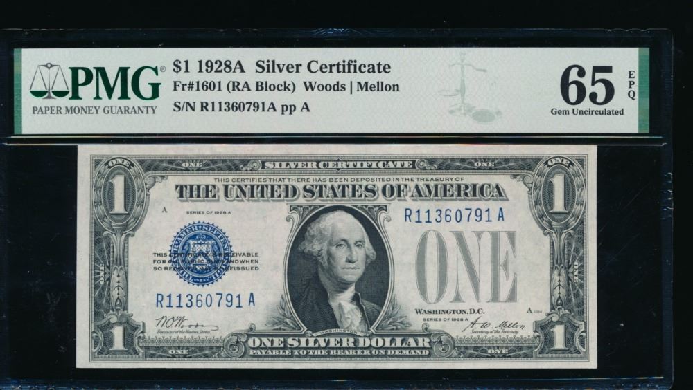 One 1928A $1 Silver Certificate PMG 65EPQ.