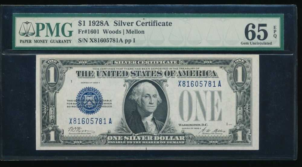One 1928A $1 Silver Certificate PMG 65EPQ.