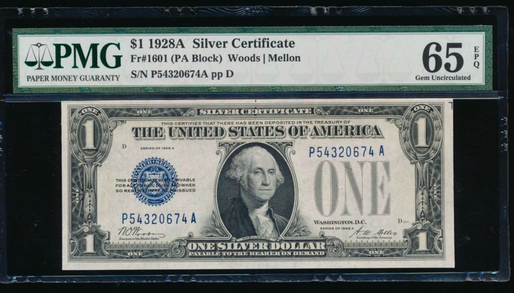 One 1928A $1 Silver Certificate PMG 65EPQ.