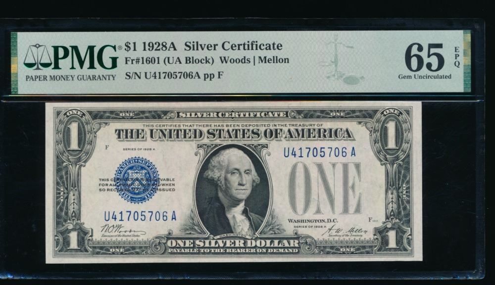 One 1928A $1 Silver Certificate PMG 65EPQ.