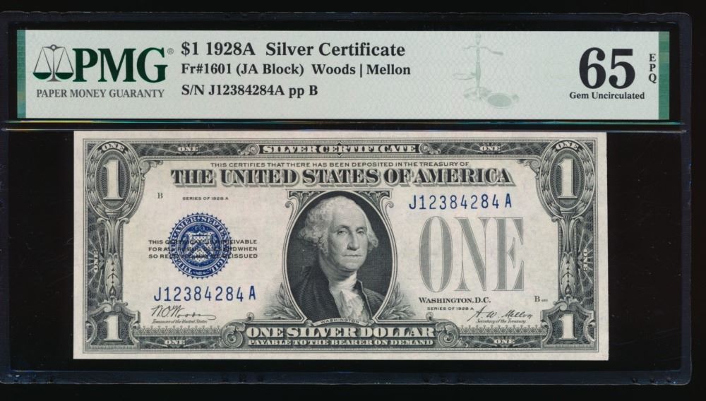 One 1928A $1 Silver Certificate PMG 65EPQ.