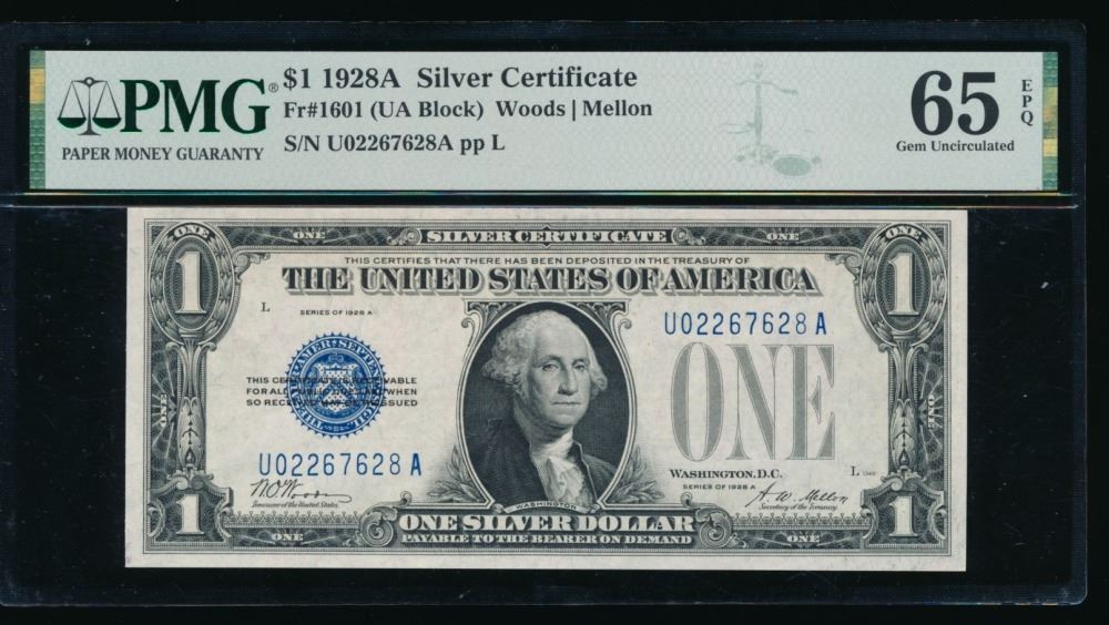 One 1928A $1 Silver Certificate PMG 65EPQ.