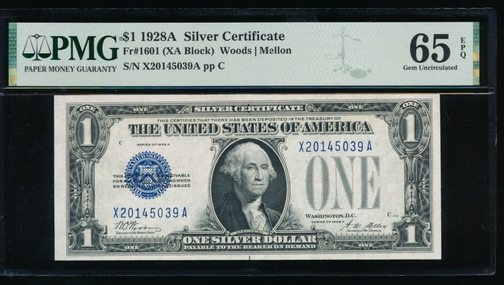 One 1928A $1 Silver Certificate PMG 65EPQ.