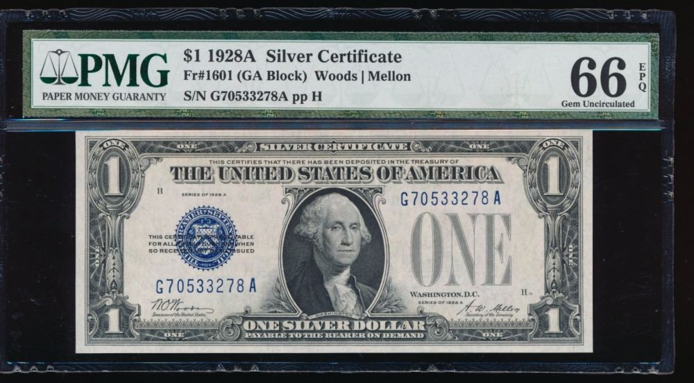 One 1928A $1 Silver Certificate PMG 66EPQ.