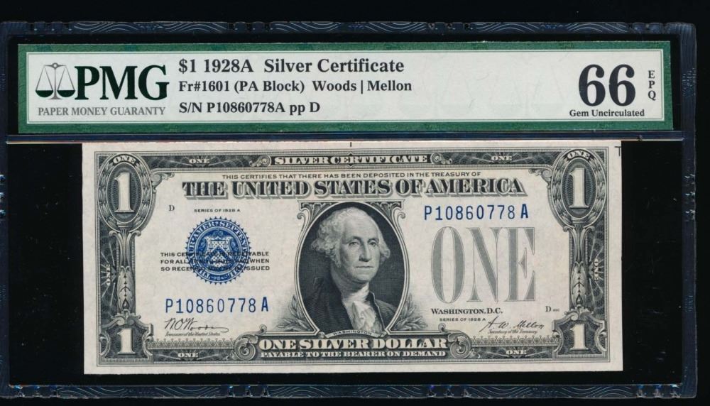 One 1928A $1 Silver Certificate PMG 66EPQ.