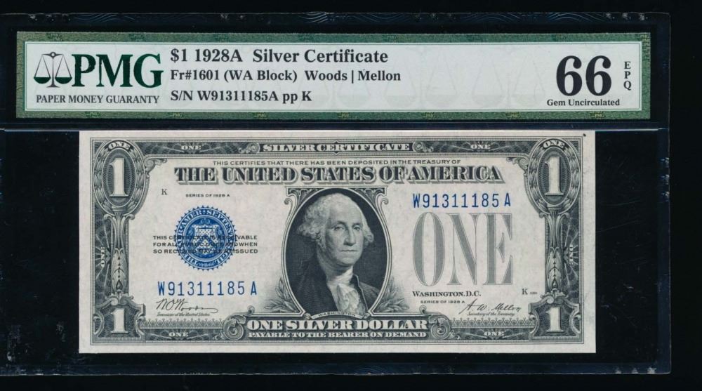 One 1928A $1 Silver Certificate PMG 66EPQ.
