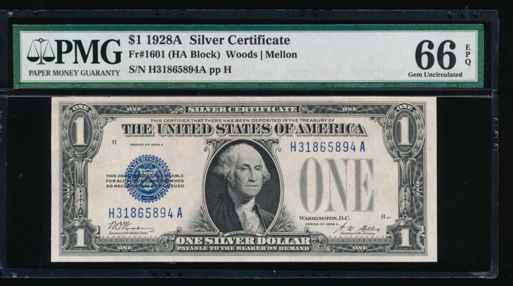 One 1928A $1 Silver Certificate PMG 66EPQ.