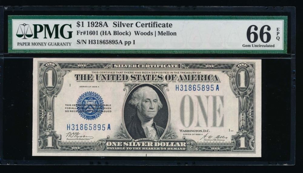 One 1928A $1 Silver Certificate PMG 66EPQ.