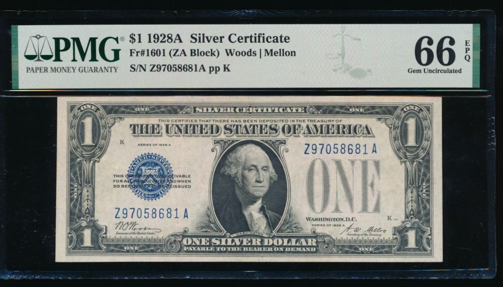 One 1928A $1 Silver Certificate PMG 66EPQ.