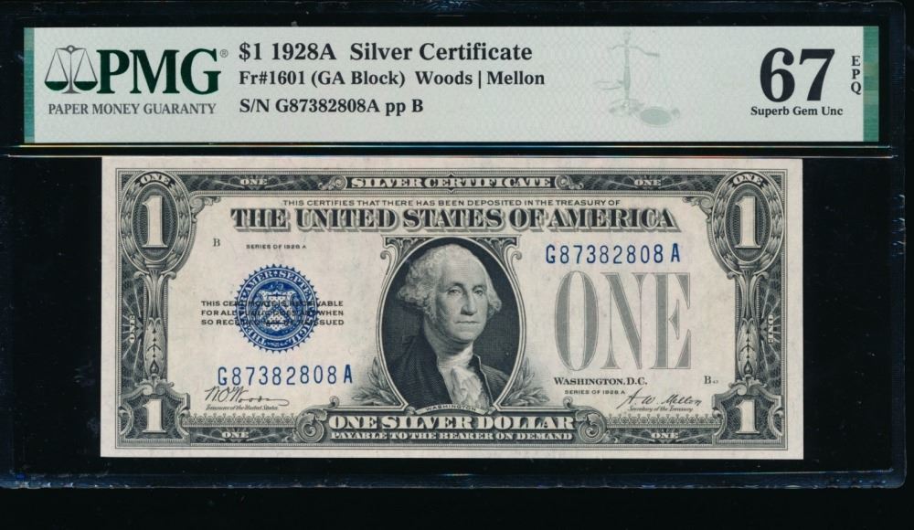 One 1928A $1 Silver Certificate PMG 67EPQ.