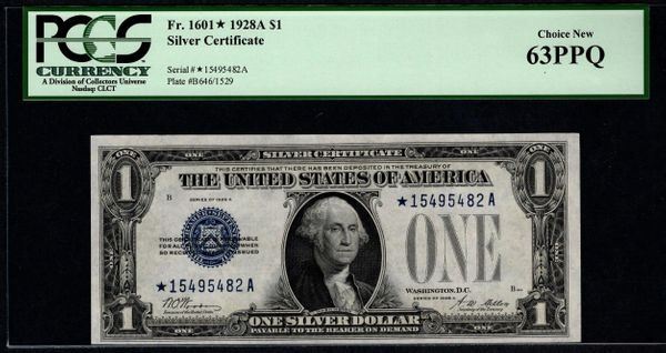 One 1928A $1 Silver Certificate STAR Note PCGS 63PPQ.