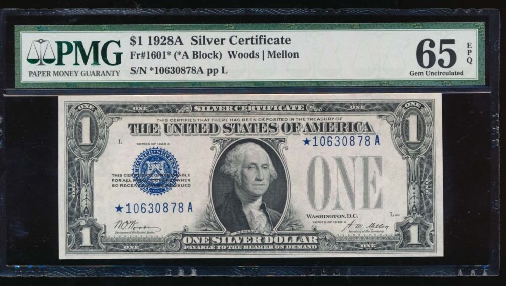 One 1928A $1 Silver Certificate Star Note PMG 65EPQ.