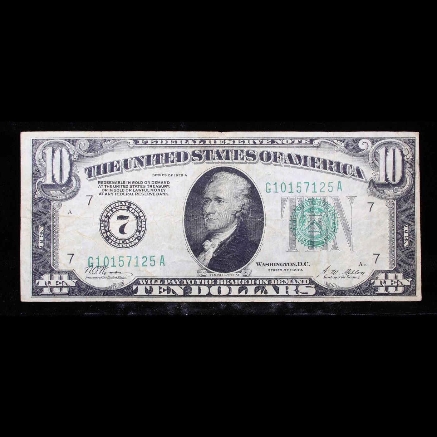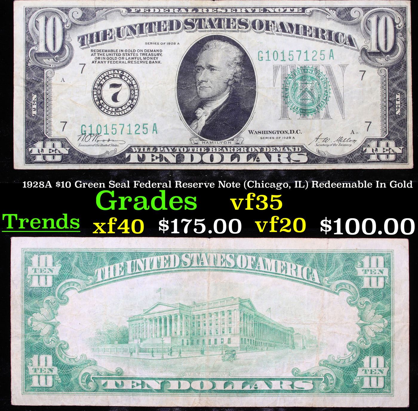 1928A $10 Green Seal Federal Reserve Note (Chicago, IL) Redeemable In Gold Grades vf++.