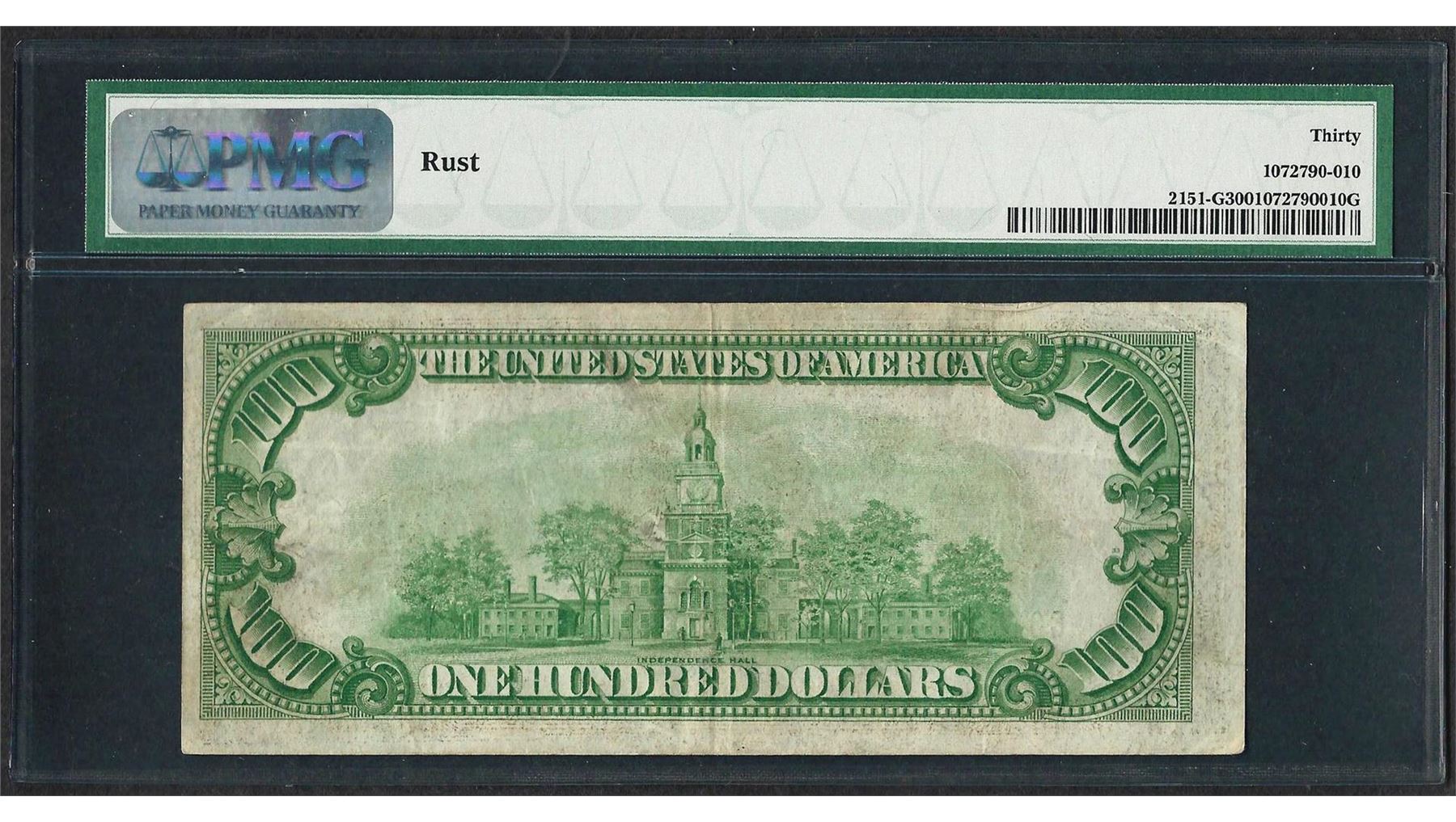 One 1928A $100 Federal Reserve Note Chicago Fr.2151-G PMG Very Fine 30. PMG Certified.