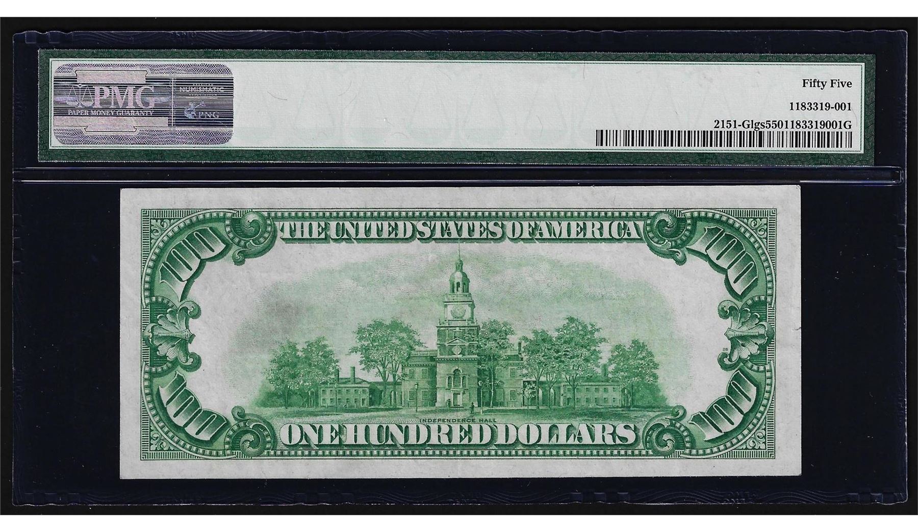 One 1928A $100 Federal Reserve Note Chicago Light Green Seal About Uncirculated 55. PMG Appraised.