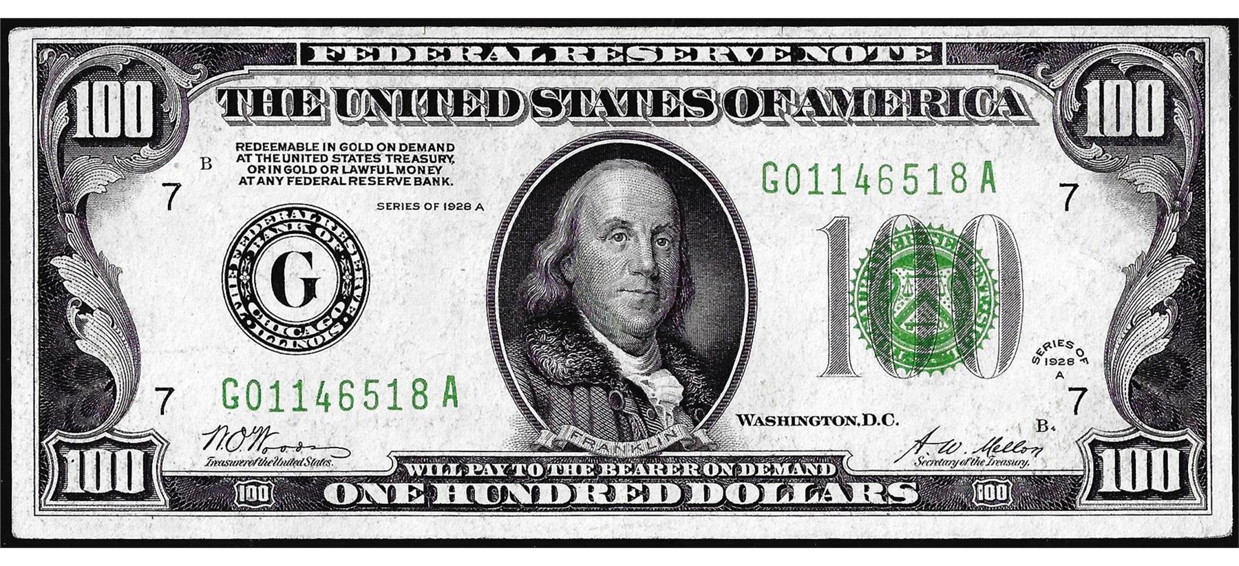 One 1928A $100 Federal Reserve Note Chicago.