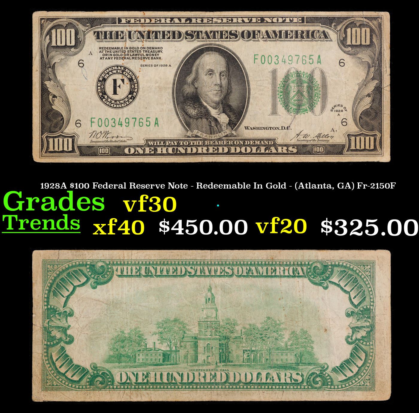 1928A $100 Federal Reserve Note - Redeemable In Gold - (Atlanta, GA) Fr-2150F Grades vf++.