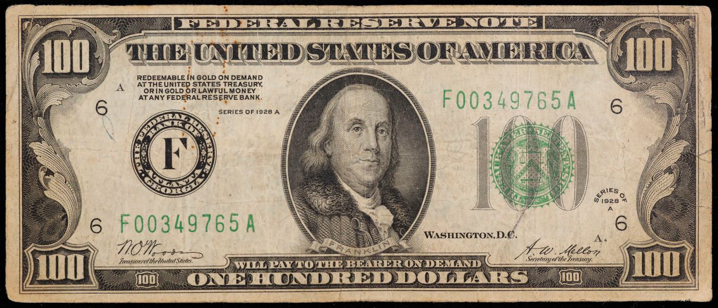 1928A $100 Federal Reserve Note - Redeemable In Gold - (Atlanta, GA) Fr-2150F Grades vf++