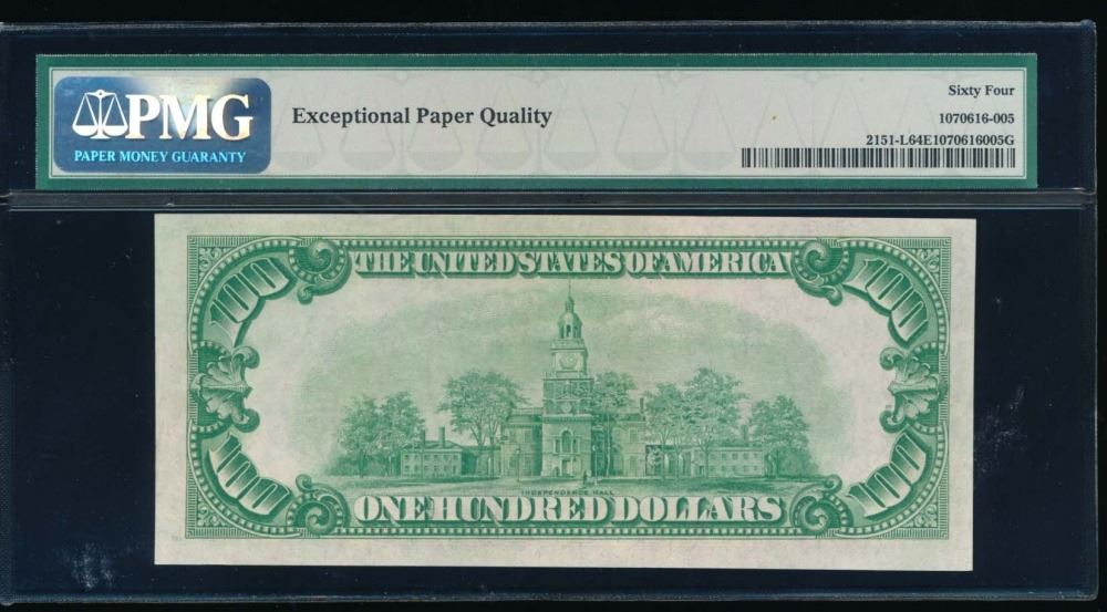 One 1928A $100 San Francisco Federal Reserve Note PMG 64EPQ.
