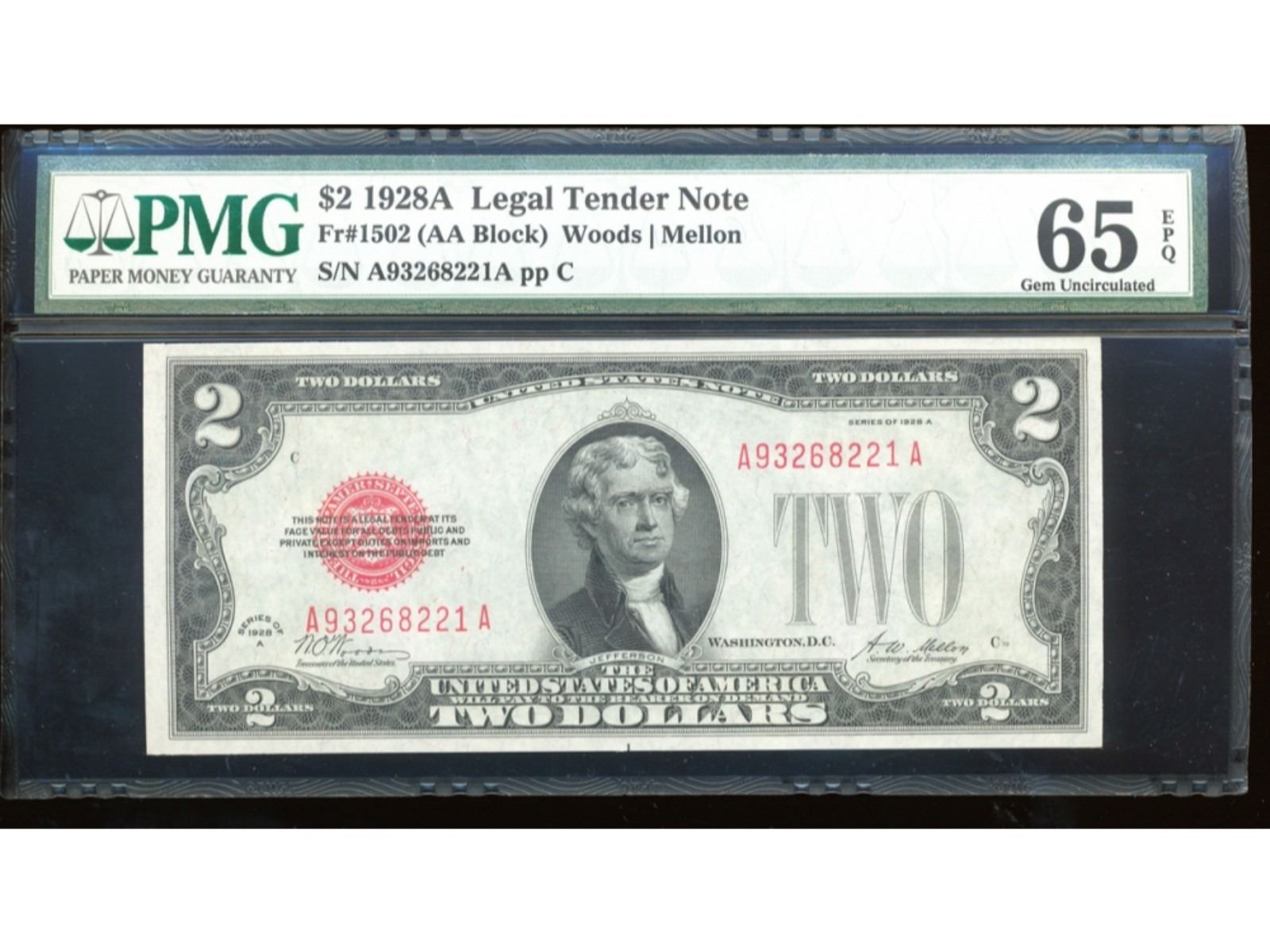 One 1928A $2 Legal Tender Note PMG 65EPQ.